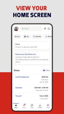 Darbiniekiem ADP lietotne piedāvā nepārspējamu ērtību, ļaujot jums piekļūt vitāli svarīgai informācijai un veikt darba pienākumus, atrodoties ceļā. Ātri apskatiet savus algas izrakstus un W2 veidlapas, pieprasiet atvaļinājumus un pārraugiet savu nostrādāto laiku. Ar vieglumu reģistrējieties un izrakstieties no darba, izveidojiet un pārvaldiet laika uzskaites lapas, kā arī precizējiet savas laika kartes. Jums būs arī pieeja informācijai par savu algas kartes kontu un ieguvumu plāniem, kā arī iespēja sazināties ar kolēģiem. Turklāt, izmantojot ADP un trešo pušu piedāvājumus, varat atrast dažādus pakalpojumus un produktus.