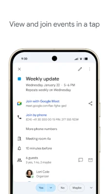 Pārņemiet kontroli pār savu laiku ar Google kalendārs – lietotni, kas radīta, lai vienkāršotu jūsu ikdienu. Gūstiet pilnīgu skaidrību par savu grafiku, pateicoties dinamiskām skatījumu iespējām: ātri pārejiet no detalizēta dienas plānotāja uz nedēļas pārskatu vai mēneša kopskatu ar vienu pieskārienu. Pateicoties viedai integrācijai ar Gmail, visi jūsu svarīgākie notikumi – sākot no lidojumu un viesnīcu rezervācijām līdz koncertu biļetēm un restorānu apmeklējumiem – tiek automātiski pievienoti jūsu kalendāram, nodrošinot, ka jūs nekad neko nepalaidīsiet garām un vienmēr būsiet soli priekšā.