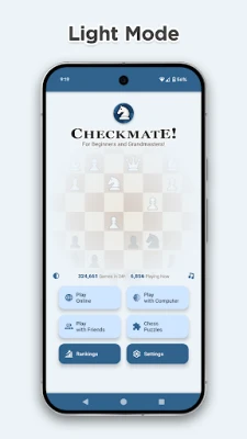 Checkmate ir moderna šaha lietotne ar draudzīgu dizainu un klasisku mūziku. Atklājiet šo karalisko spēli, spēlējiet tiešsaistē ar spēlētājiem visā pasaulē vai trenējieties bezsaistē ar datoru. Inovatīva šaha pieredze.